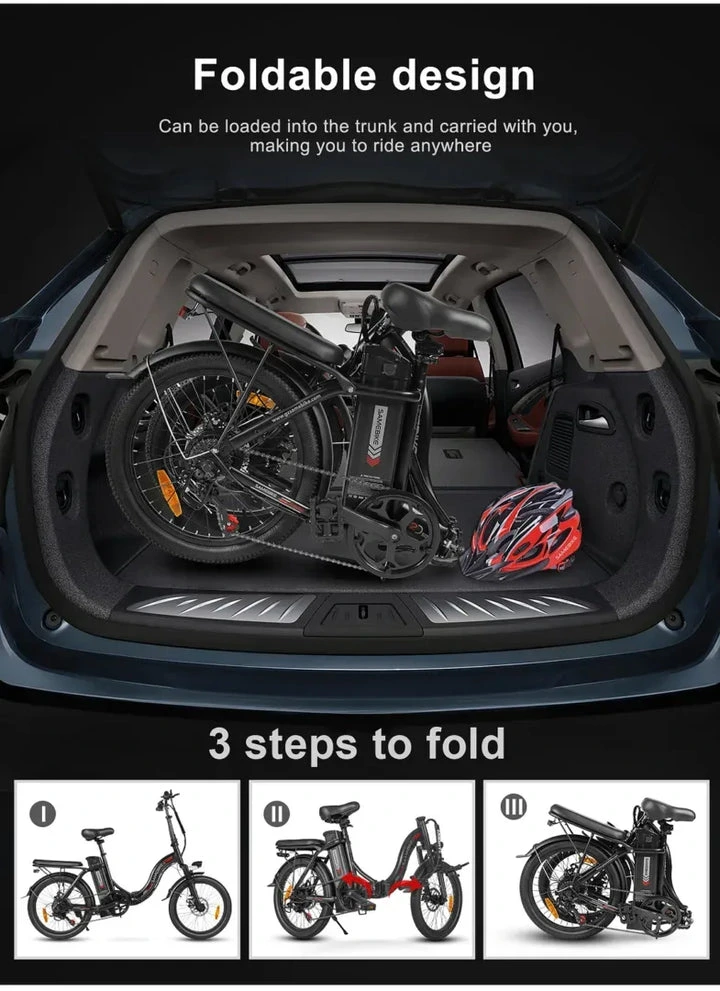 The SAMEBIKE CY20 Folding City Electric Bike is a practical choice for everyday commuting and comfortable urban riding. Its folding design makes it easier to store, carry and transport, while the 250W motor and 36V 13Ah battery support smooth day-to-day travel.