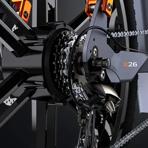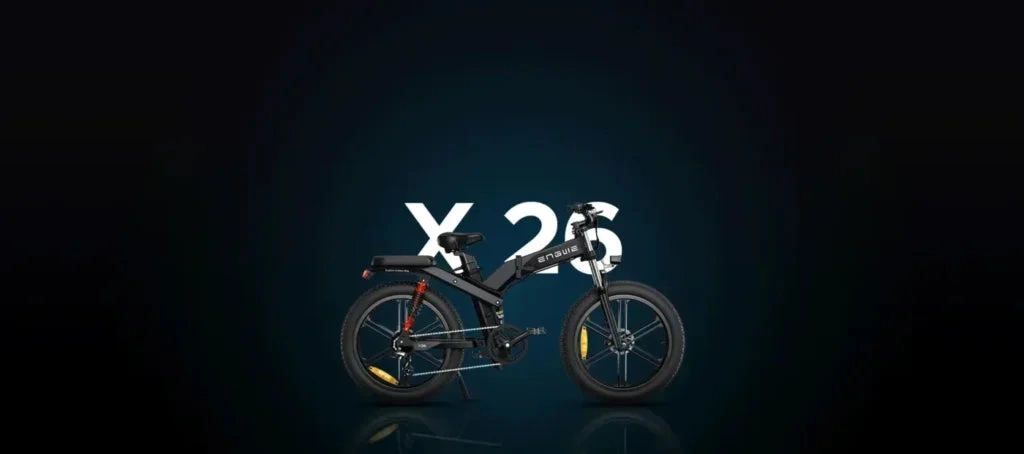 Shop the ENGWE X26 / X24 / X20 cargo electric bike with dual battery power, fat tyres and triple suspension for city rides and off-road trips.